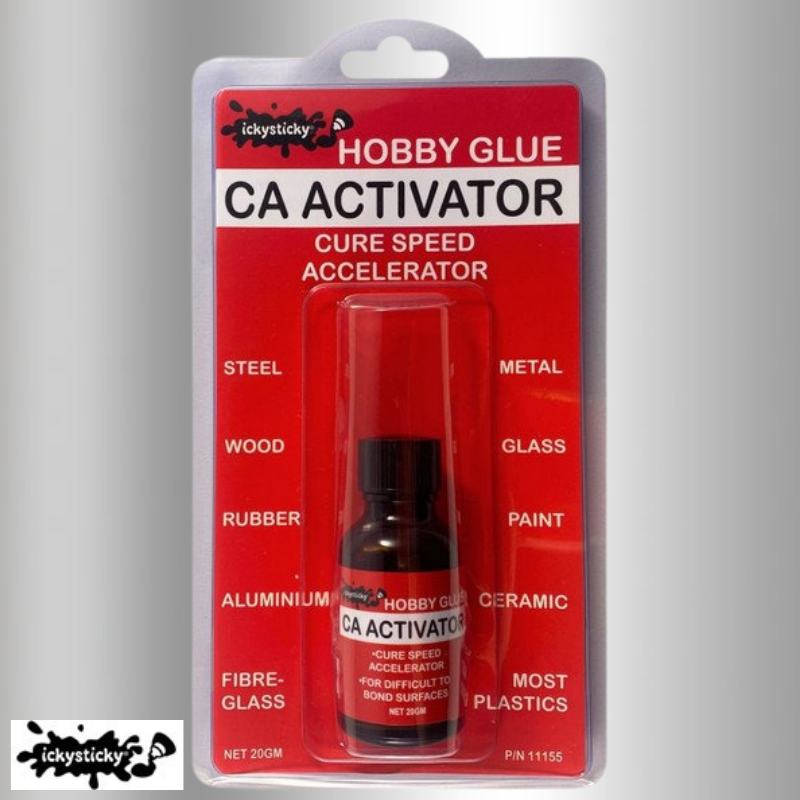ICKYSTICKY CA ACTIVATOR is a single component, solvent based surface accelerator designed to increase the speed cure of ICKYSTICKY range of CA glues.