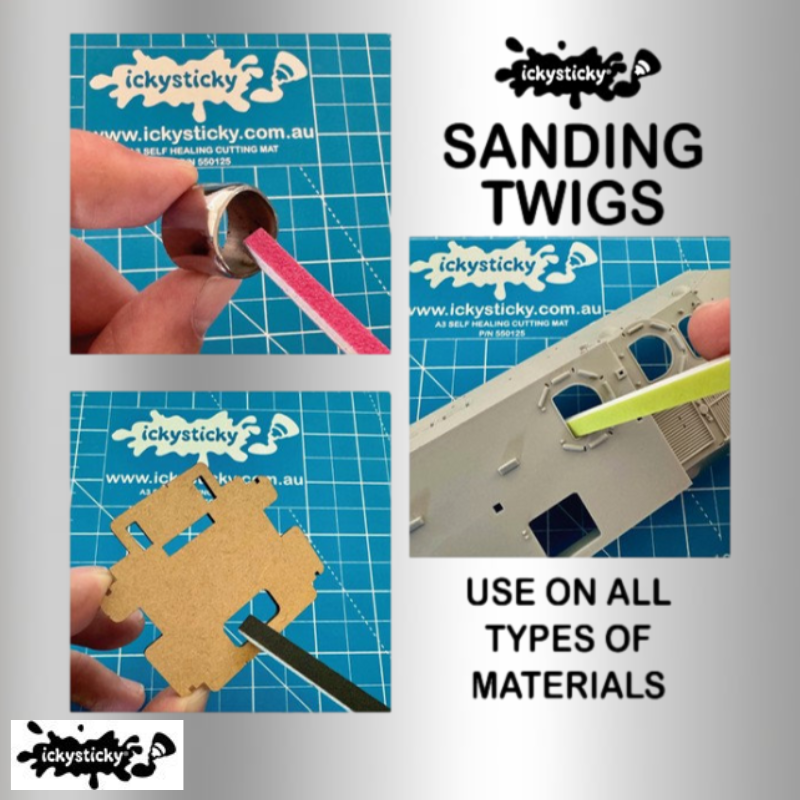 ICKYSTICKY SANDING TWIGS are perfect for sanding in hard-to-reach, small, tight spaces.